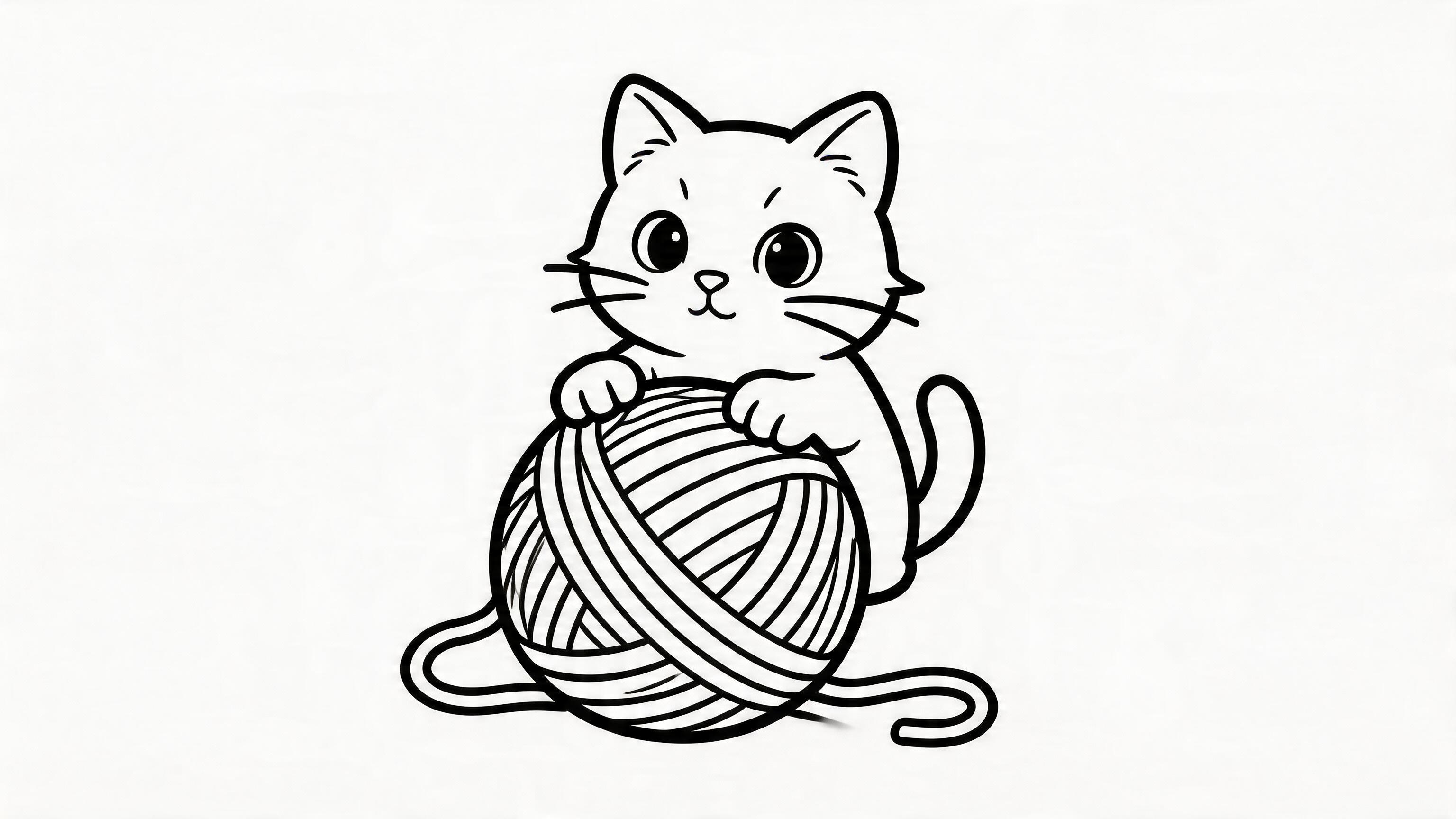 One prop is enough. A yarn ball OR a bow OR a flower — not all three. Every extra object makes the page harder to finish, and unfinished pages kill motivation.